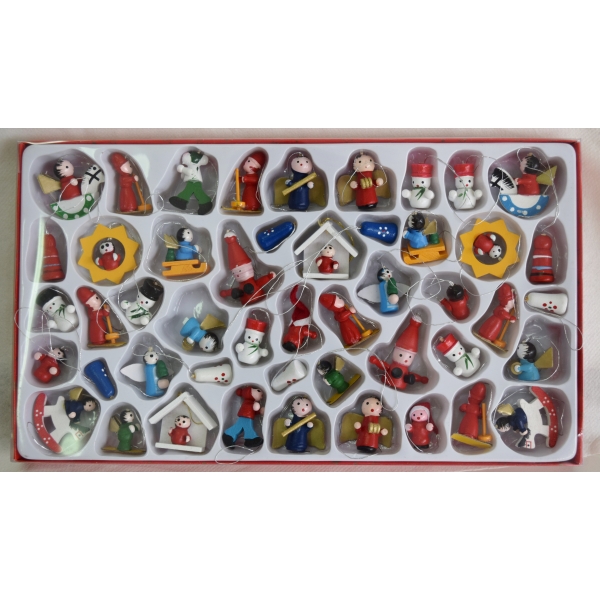 Das 48-teilige Holzset besteht aus kleinen liebevoll geklebten Figuren, die farbig bemalt sind. Verpackt sind diese im dekorativen Geschenkkarton mit Klarsichtdeckel.